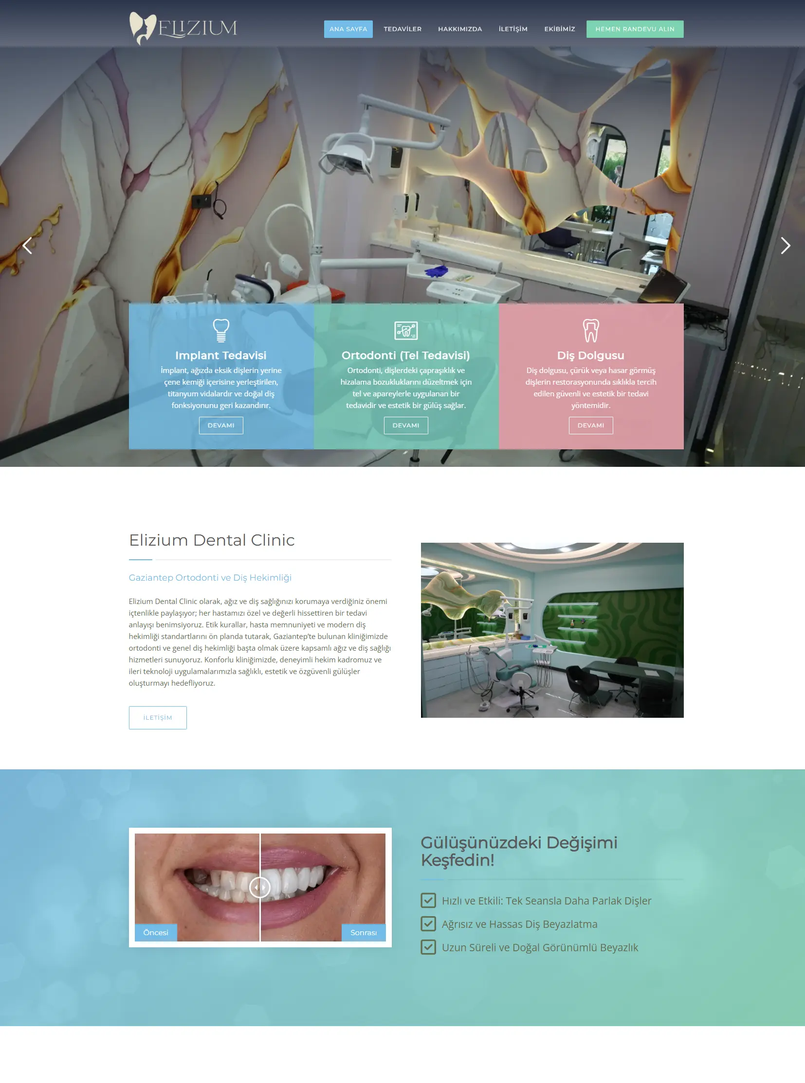 [Elizium Dental Clinic] için kurumsal web sitesi tasarım ve geliştirme süreci uçtan uca tarafımızdan gerçekleştirilmiştir. Proje kapsamında markanın dijital kimliği yeniden ele alınarak modern, kullanıcı odaklı ve mobil uyumlu bir yapı oluşturulmuştur.